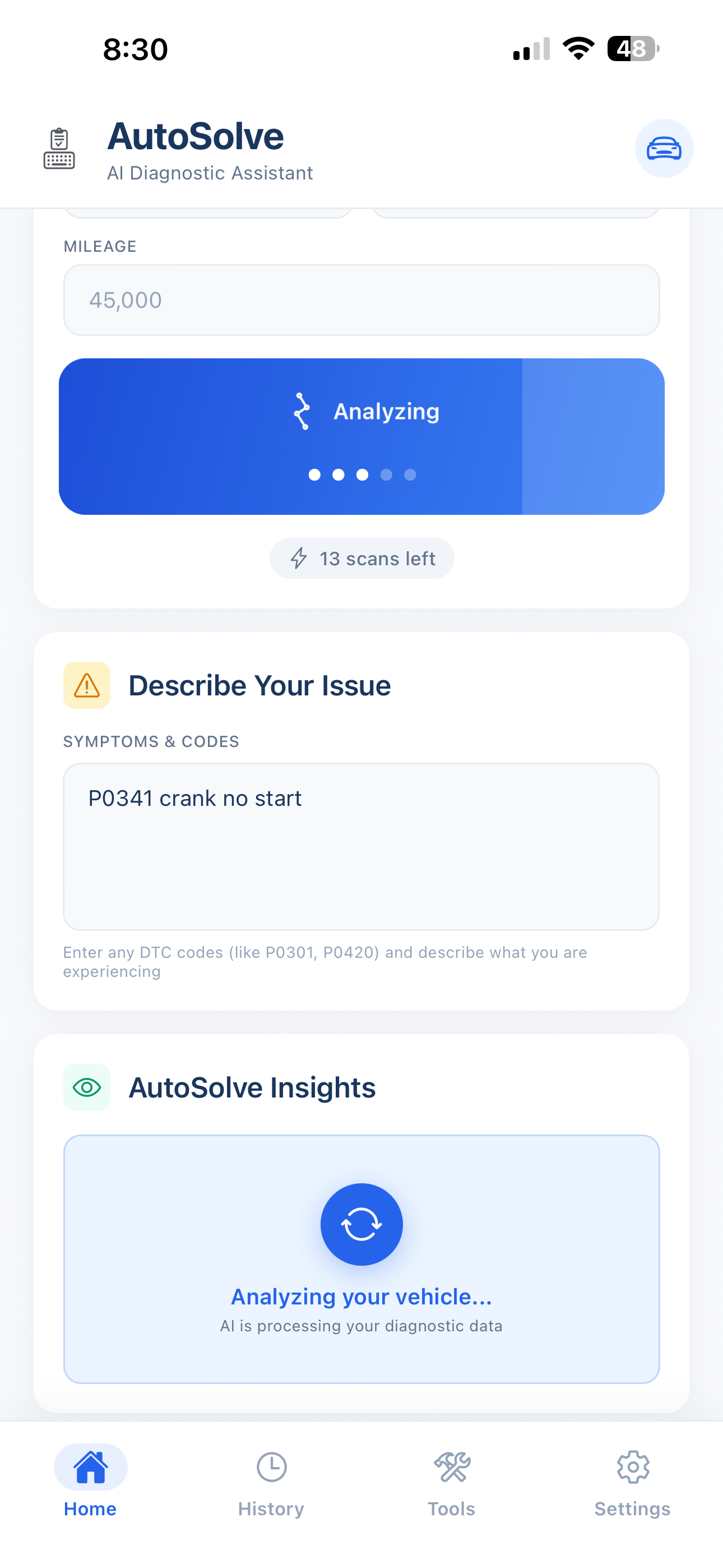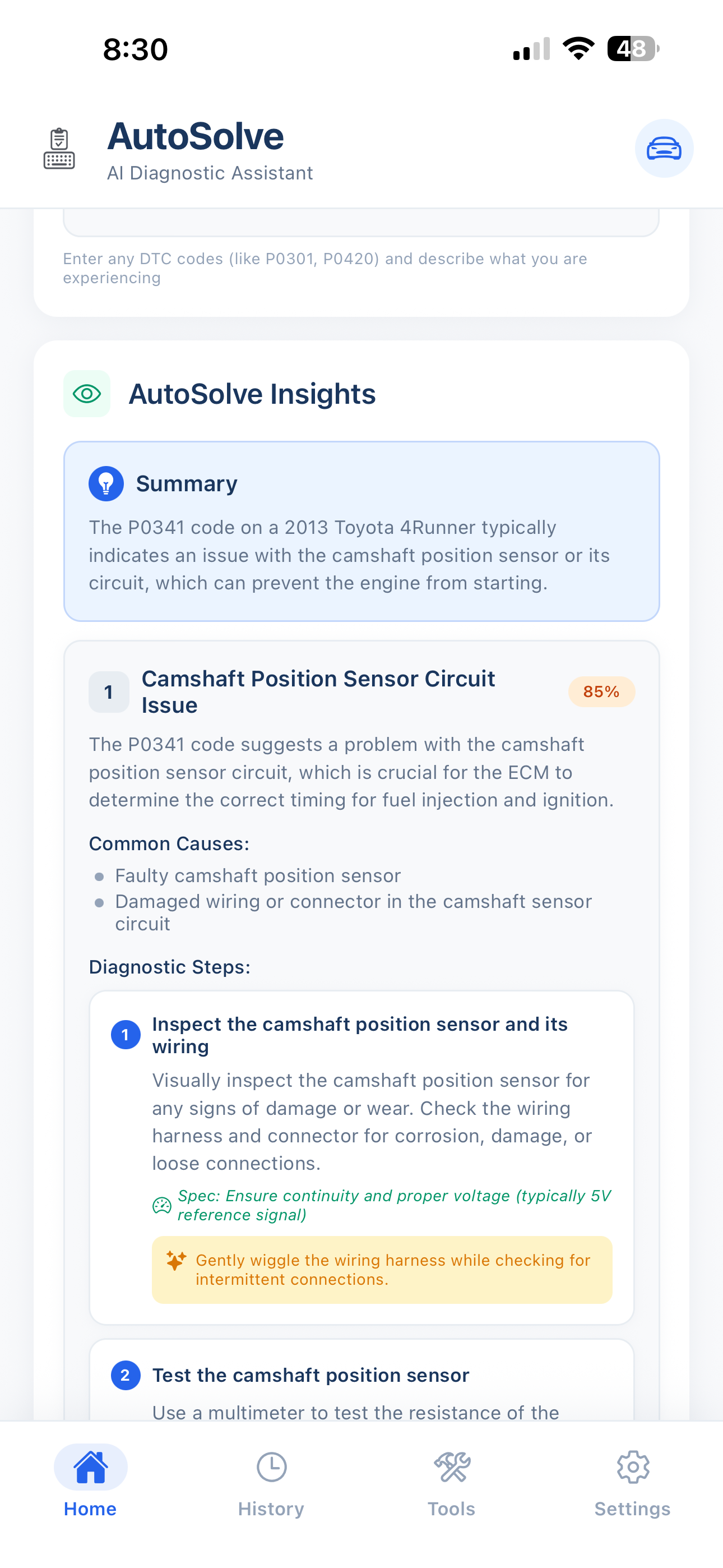 Stop guessing parts. AutoSolve uses GPT-4 to analyze symptoms, OBD-II codes, and crowdsourced repair data to tell you exactly what's wrong and how to fix it.